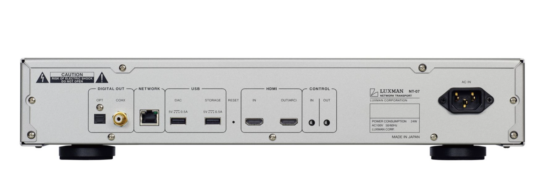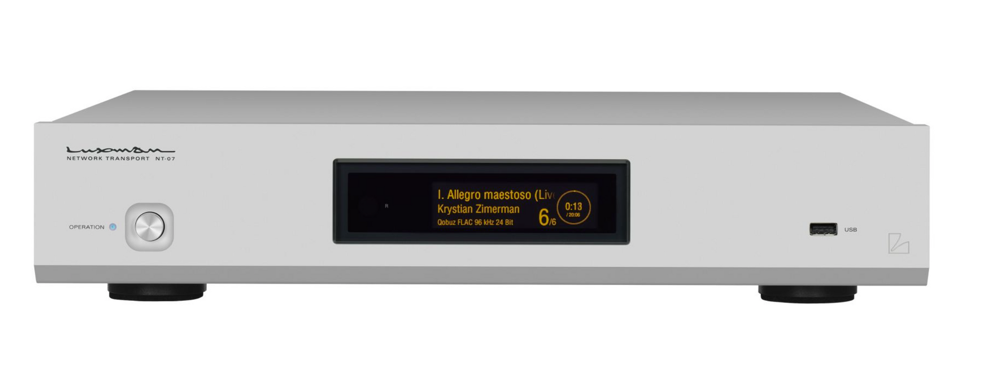 Der Luxman Network Transport NT-07 ist ein Musik-Streamer, der entwickelt wurde, um bestehende D/A-Wandler um erweiterte Netzwerkwiedergabefunktionen zu erweitern. Als Luxmans erster Netzwerktransport kombiniert der NT-07 moderne digitale Audiotechnologie mit dem umfassenden Audio-Know-how des Unternehmens, um eine Vielzahl von Tonquellen mit hervorragender Klangqualität zu bieten.